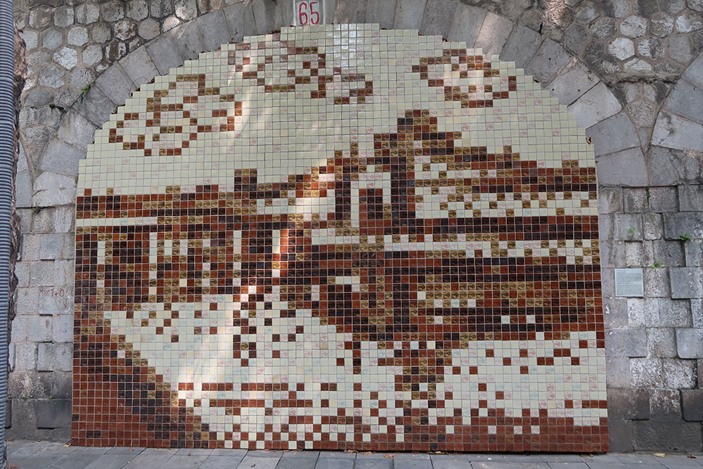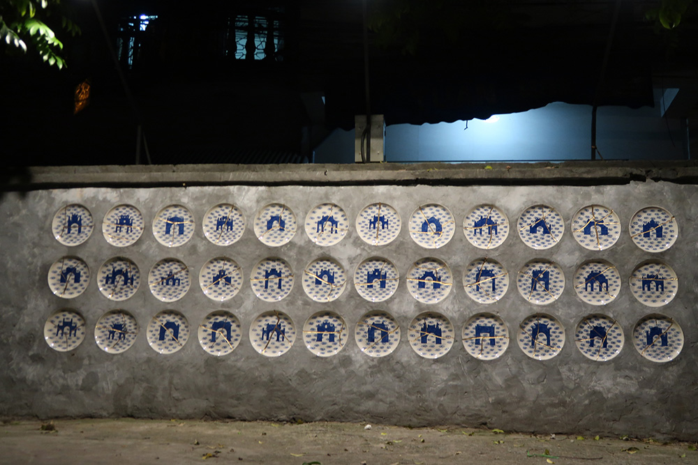 Phạm KHắc Quang – PHẢNG PHẤT CỬA ĐÔNG: Nghệ thuật đồ họa khắc gỗ dân gian vào đương đại dưới hình thức điểm ảnh bằng vật liệu gốm ngoài trời, hình ảnh một trong 5 cửa ô xưa của hoàng thành tỏ mời phảng phất mang đến cho người xem bịn rịn khôn nguôi