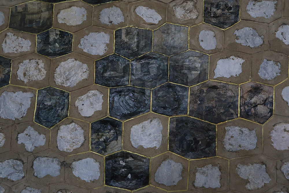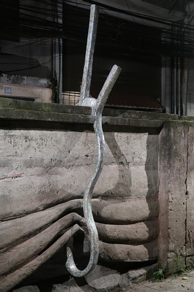 Nguyễn Đức Phương – PHÙ SA: Tái hiện nền móng một ngôi chùa thế kỷ 16 đã bị biến mất để lại sự hoài tiếc mà không còn cơ hội phục dựng. Chất liệu bụi phố nhào luyện với những mảnh sành đáy sông