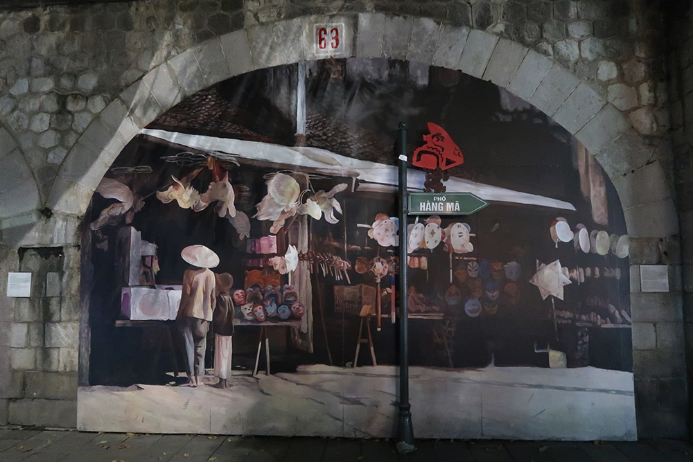 Trần Hậu Yên Thế, Lê Đăng Ninh – PHỐ HÀNG MÃ PHỐ CỦA TUỔI THƠ: Bày trên phố giờ đã là đồ chơi cổ truyền xen với nhập khẩu, bức tranh ẩn một nụ cười hài buồn nhưng cũng lấp lánh hi vọng truyền thống vĩnh cửu. Đề xuất trên bảng tên phố có một ký tự văn hóa giới thiệu hàng bán rất nhiều ý nghĩa