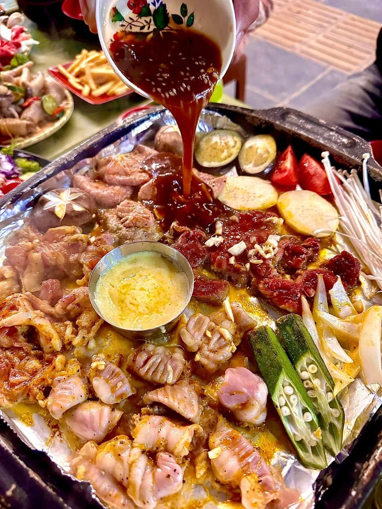 “Ngon” ở đây không chỉ là cái tên mà còn là cảm nhận riêng của mình và những người khách từng ăn ở đây. Nhìn đĩa thịt để nướng tươi roi rói trông cực kỳ hấp dẫn, vẫn là những loại thịt bò, nầm, ba chỉ và lòng nhưng được tẩm ướp đậm đà vừa vặn ăn cùng rau củ quả kết hợp với bánh mì kèm những loại sốt chấm truyền thống. Ngon nhất là nồi lẩu thái thơm nồng, chua cay mặn ngọt hài hoà rõ vị ăn từ đầu đến cuối nồi hương vị vẫn giữ mùi thơm ngon và không bị mặn. Đĩa đồ nhúng đầy đặn gồm có thịt bò, thịt gà, tôm, mực, ngao, đậu phụ, các loại viên thả lẩu và rau ăn kèm.