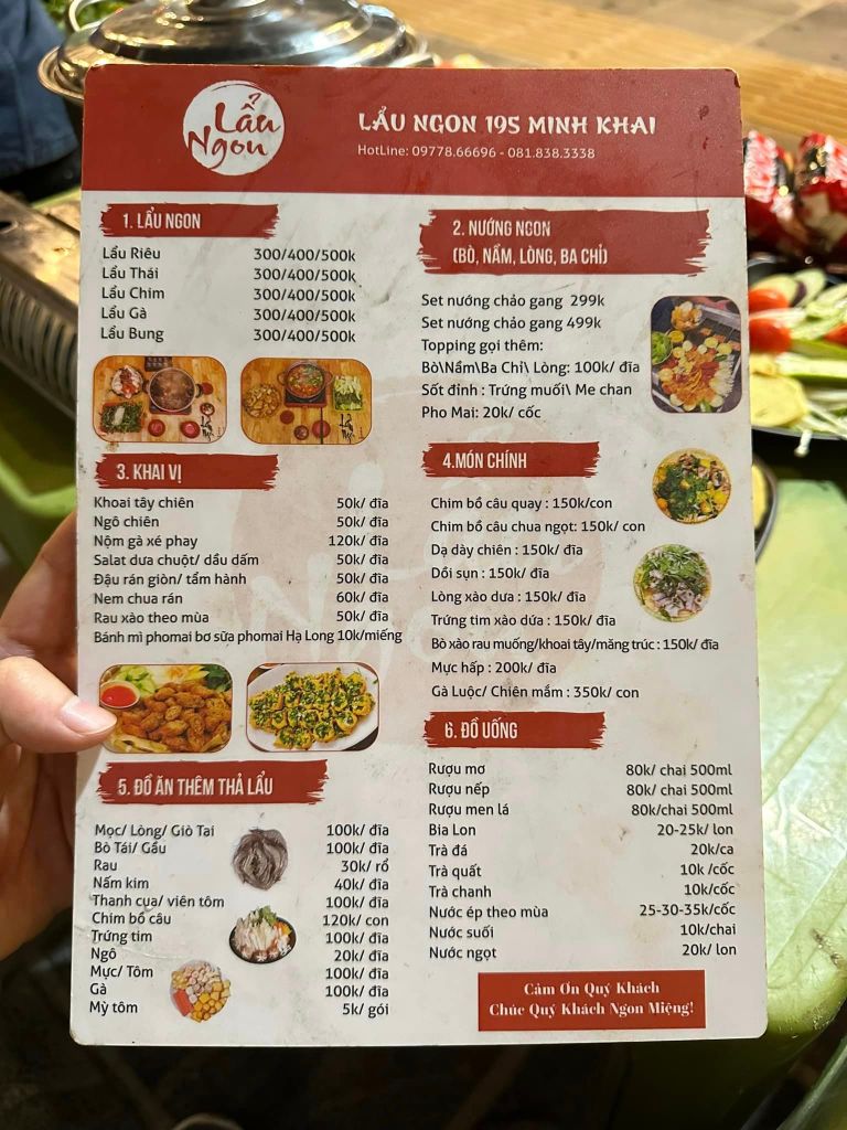 Quán Lẩu Ngon nằm ngay 195 Minh Khai, trước đây 3 năm từng bán ở Trần Khát Chân. Một quán không quá lớn, nhưng khách ngồi tràn lan ở vỉa hẻ, anh nói “giờ này hơi sớm khách chưa đi ăn, nói phải thông cảm cho anh chứ lát nữa khách đông quá anh cũng không có nhiều thời gian ngồi uống rượu tâm sự cùng em được”.