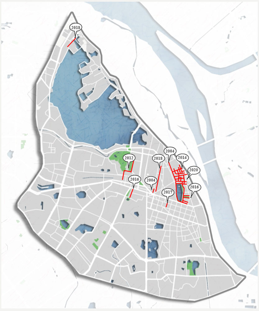 Các tuyến phố đi bộ được đề cập theo mốc thời gian