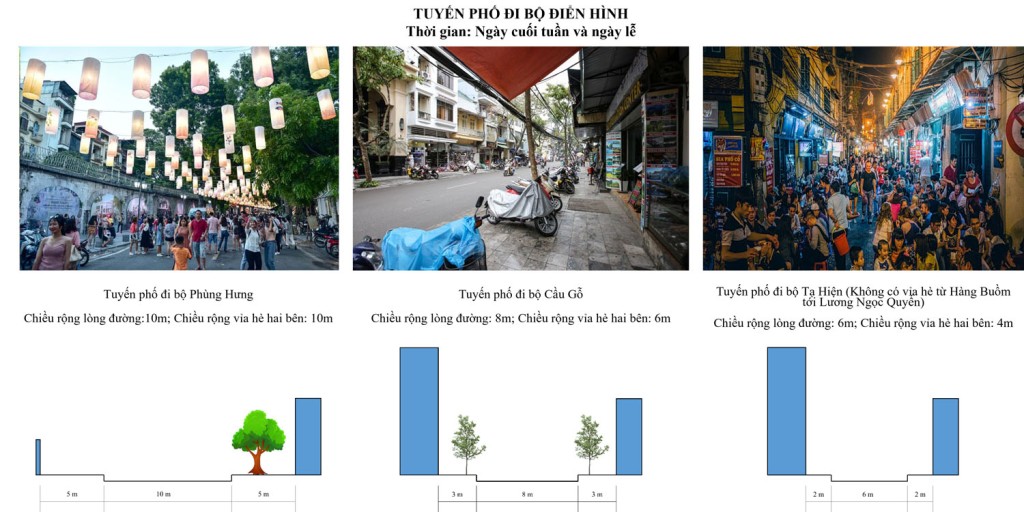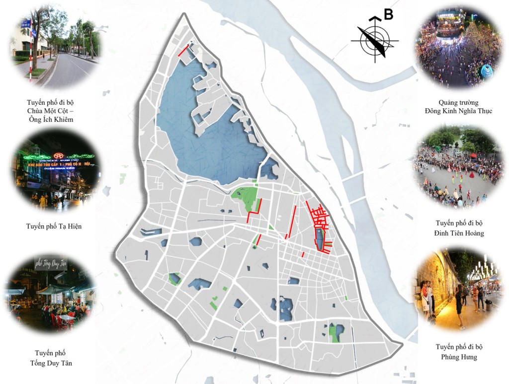 - Tuyến phố đi bộ có mặt cắt đường lớn: Phùng Hưng; Ông Ích Khiêm, Chùa Một Cột, Đinh Tiên Hoàng;
