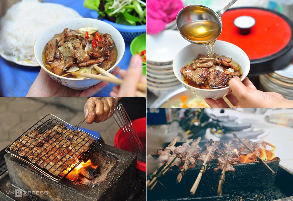 Bún chả – món thường được ăn vào bữa trưa. Món bún thịt nướng của miền Nam và miền Trung, nhưng chả ăn bún của người Hà Nội tẩm quất cầu kỳ hơn. Ai thích hương vị xưa thì có thể đến quán bún chả ở Hàng Mã, Hàng Đồng. Người thích bún chả bến tre thì tìm đến chợ Bưởi, chợ Đồng Xuân. Hay ghé sang hàng bún ở Ngọc Khánh, Giảng Võ, Lê Văn Hưu, Hàng Mành cũng đều là những quán nổi tiếng ở Hà Nội.