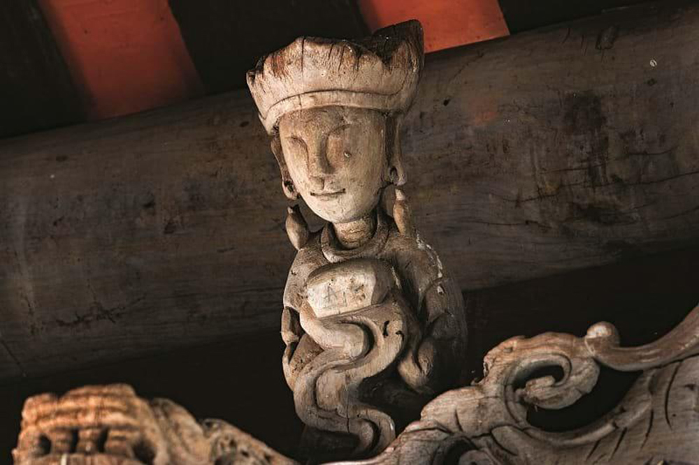 Hình tượng điêu khắc phong cách thời Mạc ở đình Tây Đằng với niên đại gần 500 năm tuổi. Hình tượng các vị tiên và trang trí trên đấu củng ở đình Tây Đằng