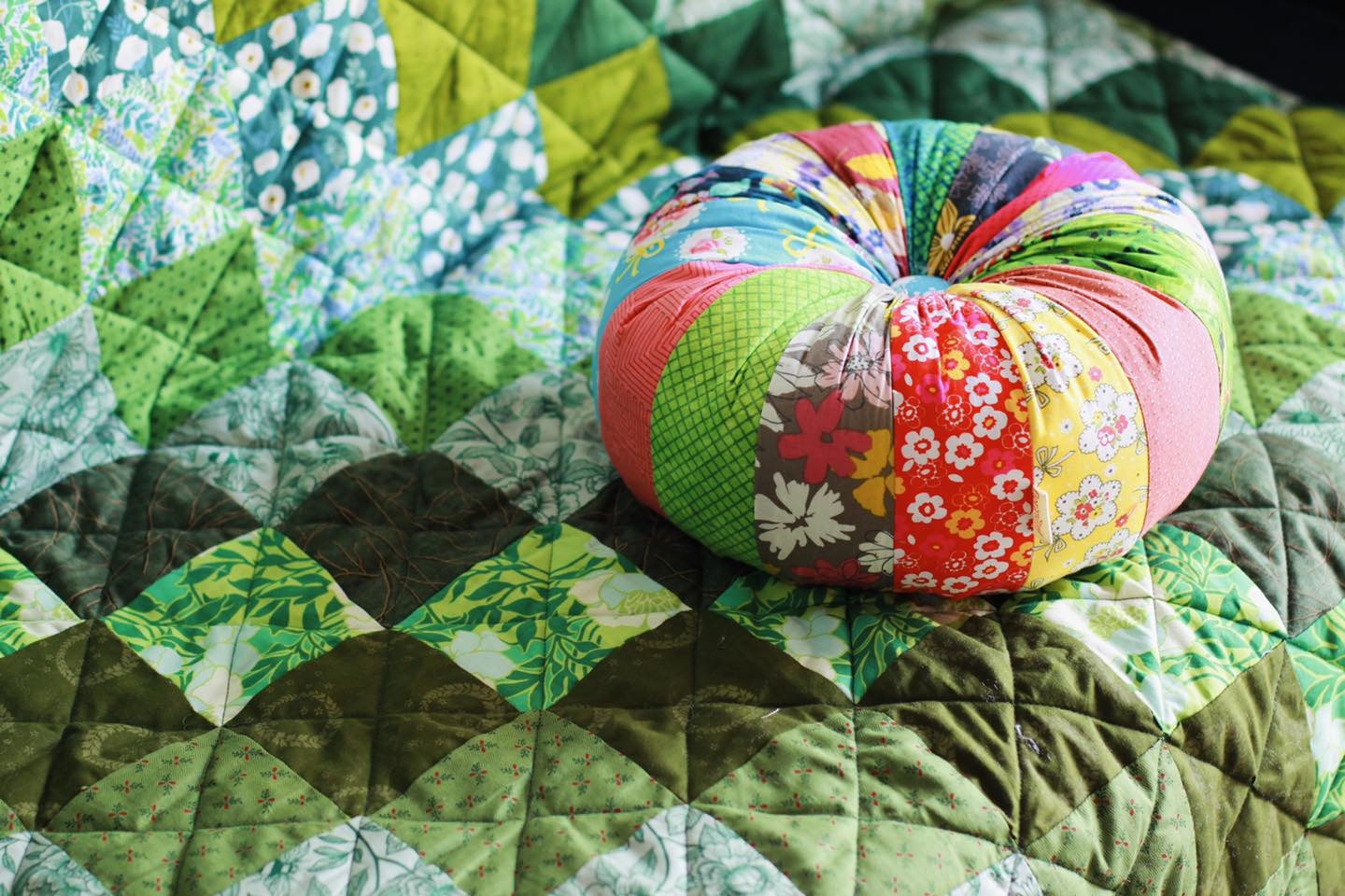 Ga trải giường, gối tựa vô cùng vui mắt, mang đến nhiều cảm hứng tích cực được làm từ nghệ thuật ghép vải quilt.