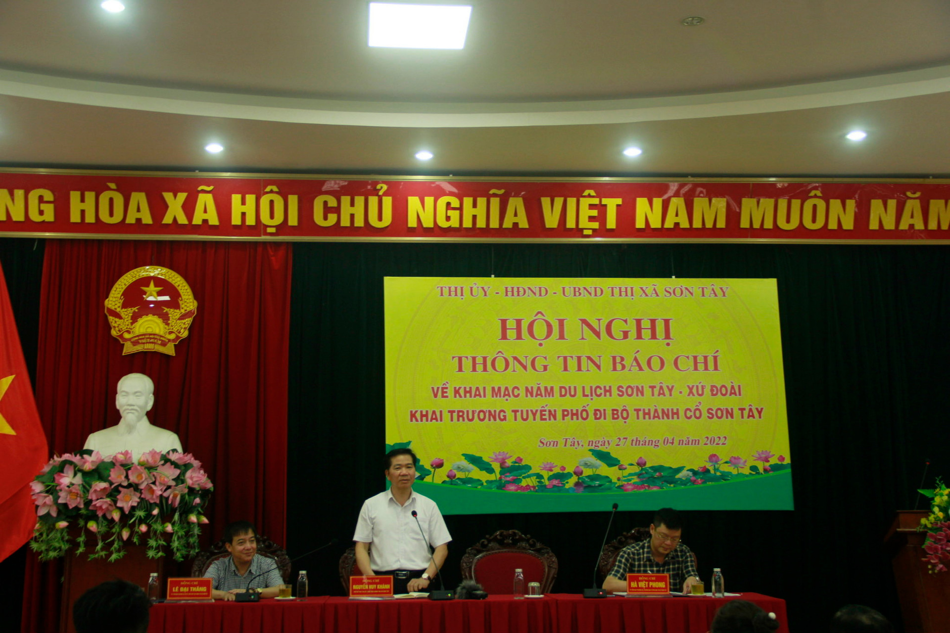Chiều 27.4, Thị ủy, HĐND, UBND thị xã Sơn Tây (Hà Nội) tổ chức hội nghị thông tin báo chí về năm du lịch Sơn Tây - xứ Đoài và hoạt động tuyến phố đi bộ Thành cổ Sơn Tây sẽ được khai trương và đi vào hoạt động từ 19h30 ngày 30.4. Không gian phố đi bộ sẽ thúc đẩy phát triển hoạt động thương mại, dịch vụ, du lịch, góp phần tăng trưởng kinh tế - xã hội của thị xã.